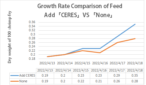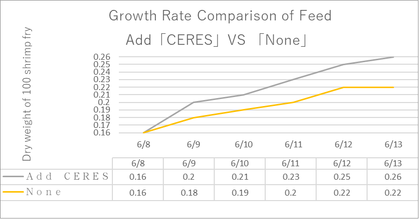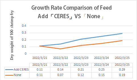 Speeding up transportation of nutrients can provide the body cells with sufficient and rapid nutrition. Our experiment proved that organisms with “CERES” will gain weight twice faster than normal feed.
